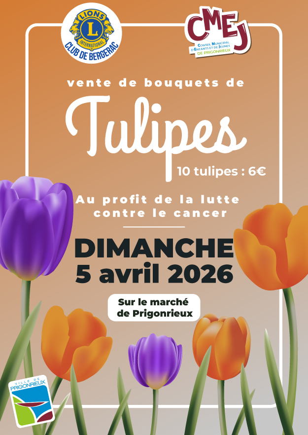 Le Conseil Municipal d'Enfants et de Jeunes (CMEJ) de Prigonrieux, avec le Lions Club de Bergerac, organise une “Opération Tulipes” :