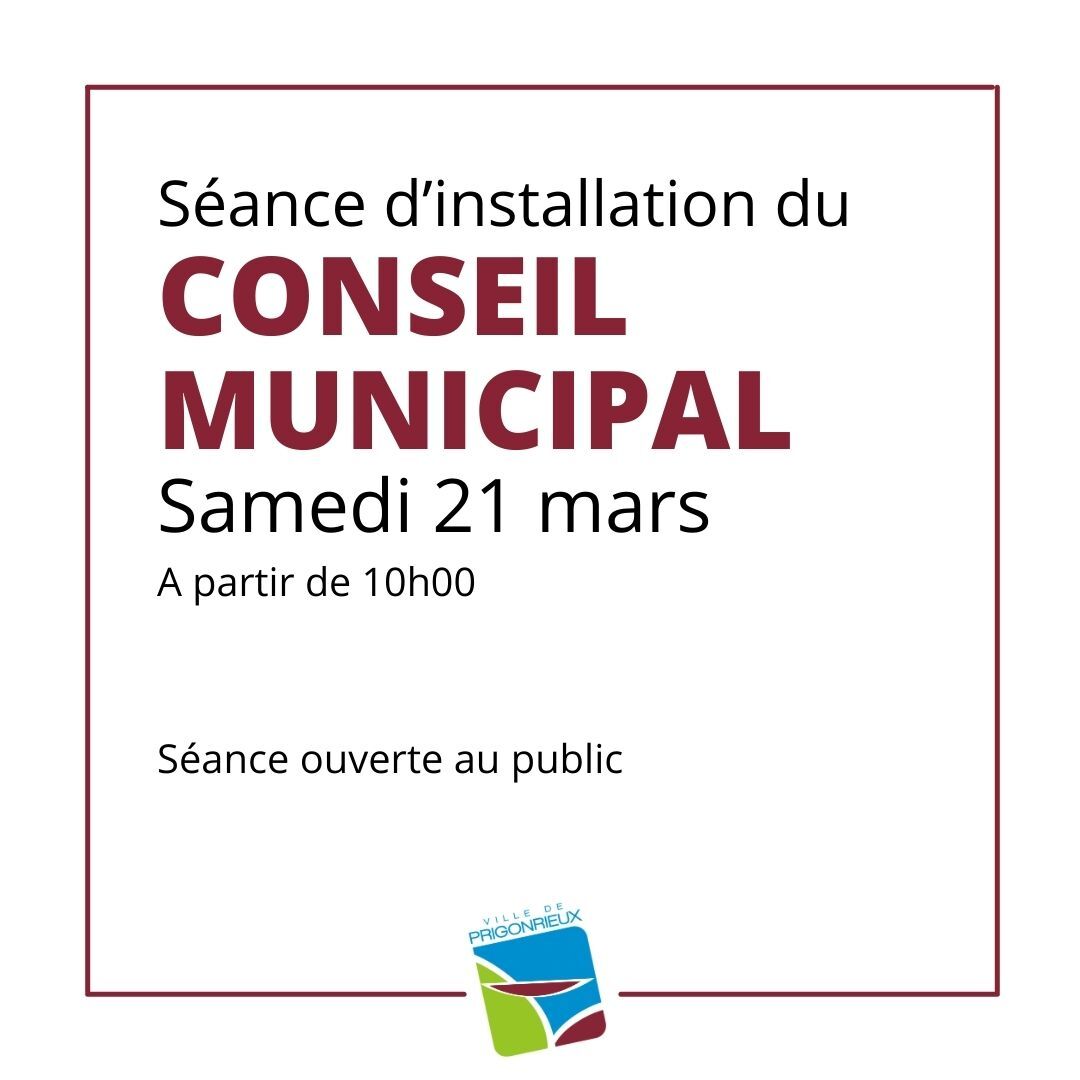 La séance d'installation du Conseil Municipal aura lieu le samedi 21 mars 2026 à partir de 10h00 dans la salle du Conseil Municipal de l'Hôtel de Ville de Prigonrieux.