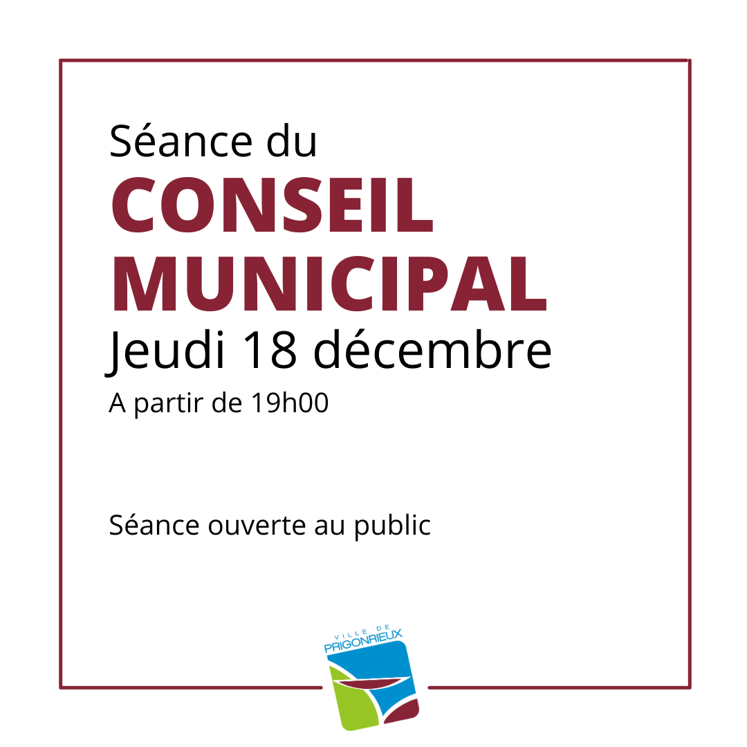 La prochaine séance du Conseil Municipal aura lieu le jeudi 18 décembre 2025 à partir de 19h00 dans la salle du Conseil Municipal de l'Hôtel de Ville de Prigonrieux.