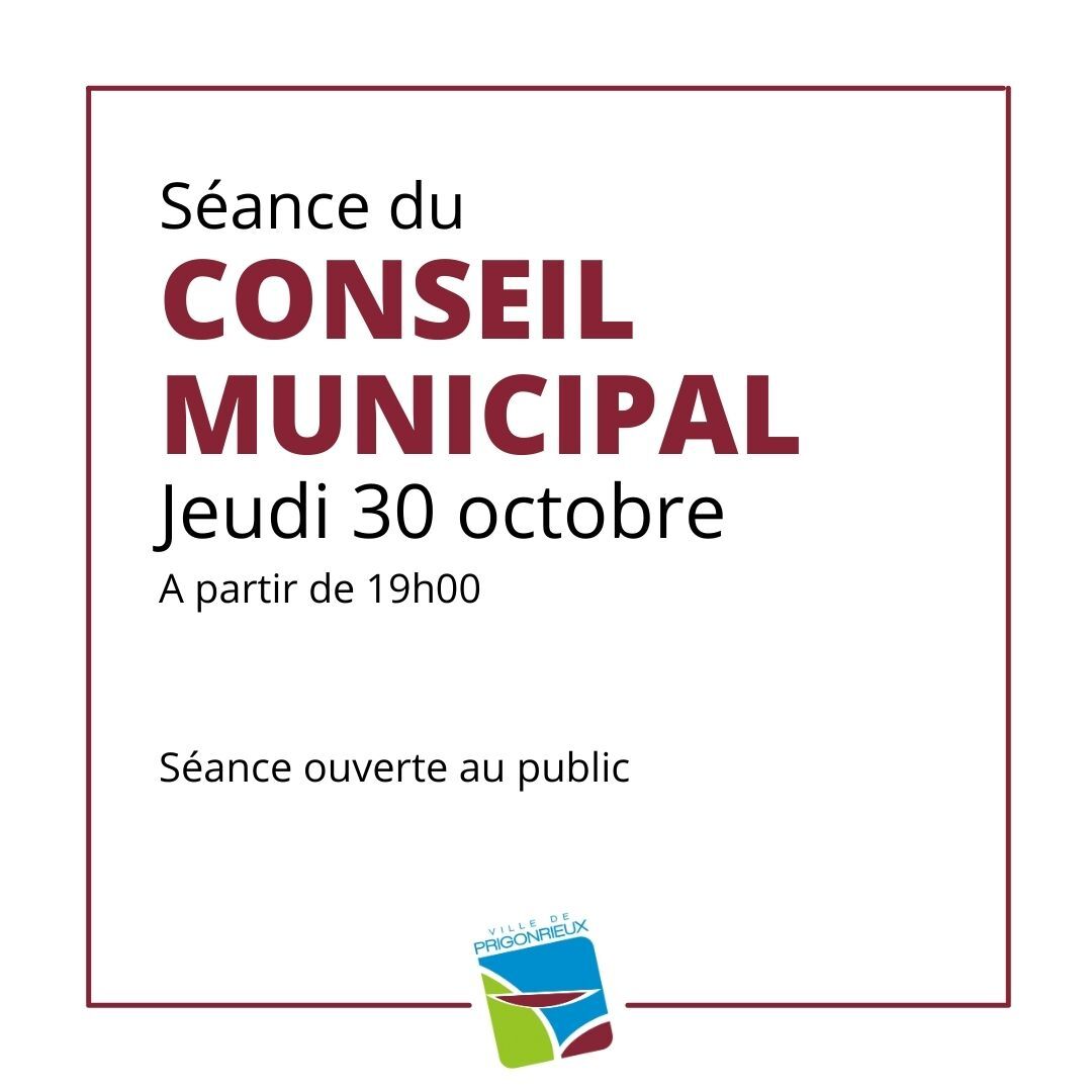 La prochaine séance du Conseil Municipal aura lieu le jeudi 30 octobre 2025 à partir de 19h00 dans la salle du Conseil Municipal de l'Hôtel de Ville de Prigonrieux.