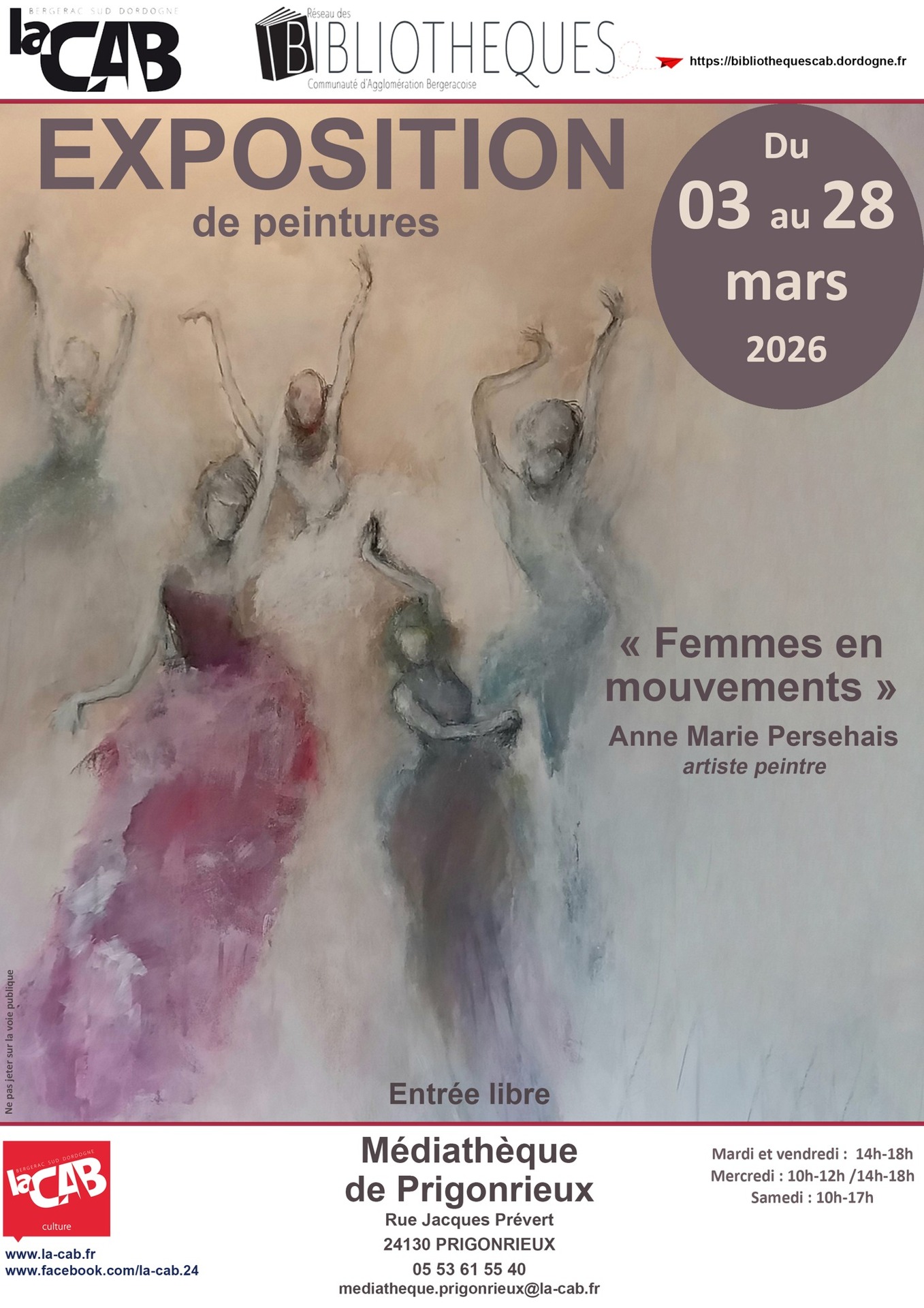 Accueil Agenda Retour Exposition "Femmes en mouvements" - Médiathèque de Prigonrieux