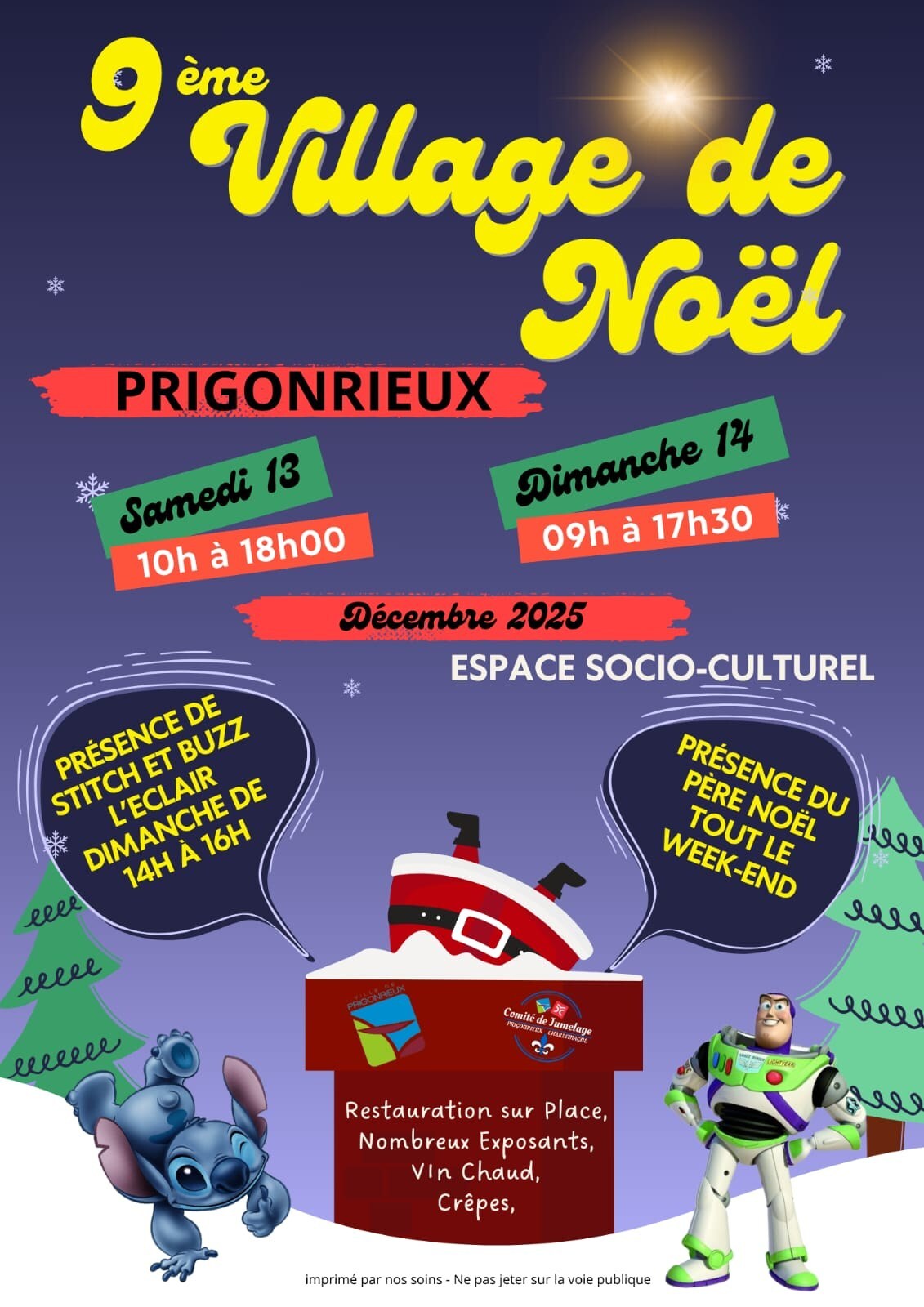 Retrouvez le neuvième village de noël de Prigonrieux, organisé par le Comité de Jumelage Prigonrieux-Charlemagne.